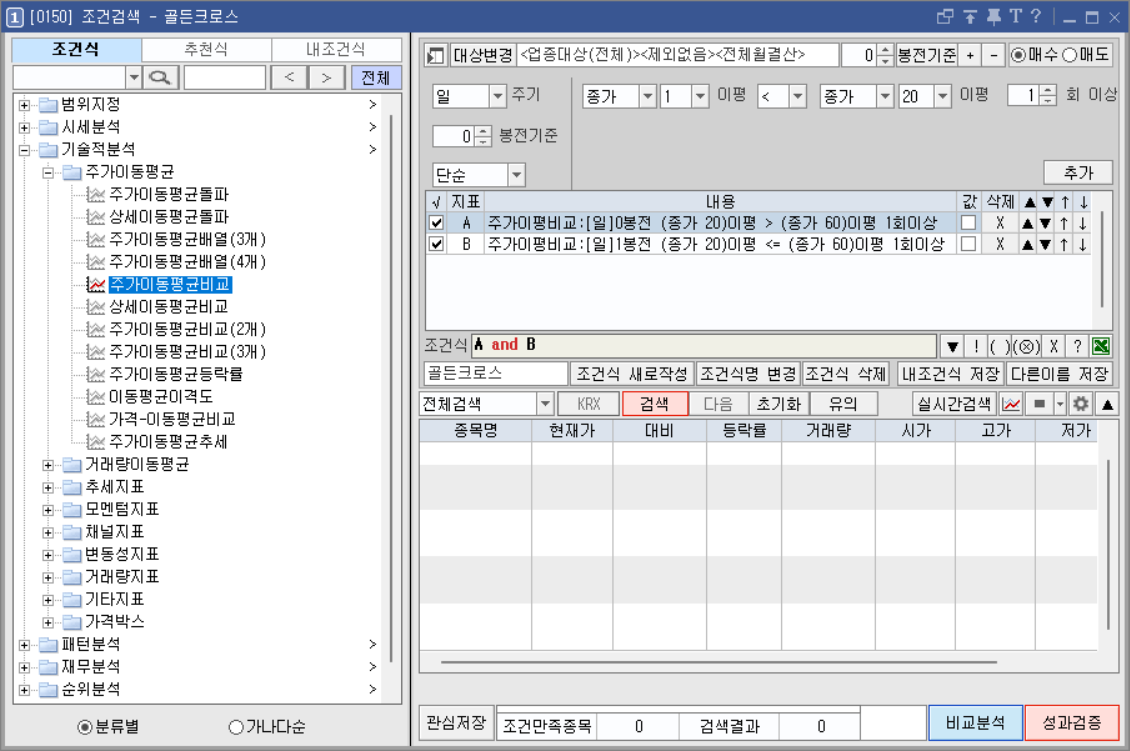 기술적 분석의 핵심 신호, 골든크로스를 직접 조건검색식으로 설정해보세요.