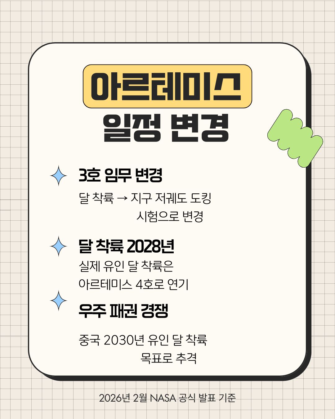 2026년 2월 말, NASA는 중대 발표를 했습니다. 아르테미스 3호의 임무를 당초 계획된 '유인 달 착륙'에서 '지구 저궤도 도킹 시험'으로 변경하고, 실제 달 착륙은 2028년 아르테미스 4호로 미룬다고 공식 발표한 것입니다. 혁신의 아이콘 스페이스X가 마주한 스페이스X 기술 난제는 무엇인지, 그리고 인류의 우주 탐사 시계바늘이 왜 늦춰지고 있는지 심층 분석해 보겠습니다.