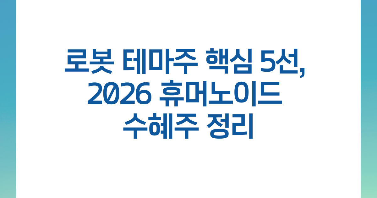 로봇·자동화 테마주는 AI와 결합해 2026년 가장 뜨거운 성장 테마 중 하나입니다. 글로벌 휴머노이드 로봇 뉴스와 국내 부품 공급망 진입 여부를 꾸준히 모니터링하며 접근하세요. 유익하셨다면 구독과 댓글 부탁드립니다! 🤖