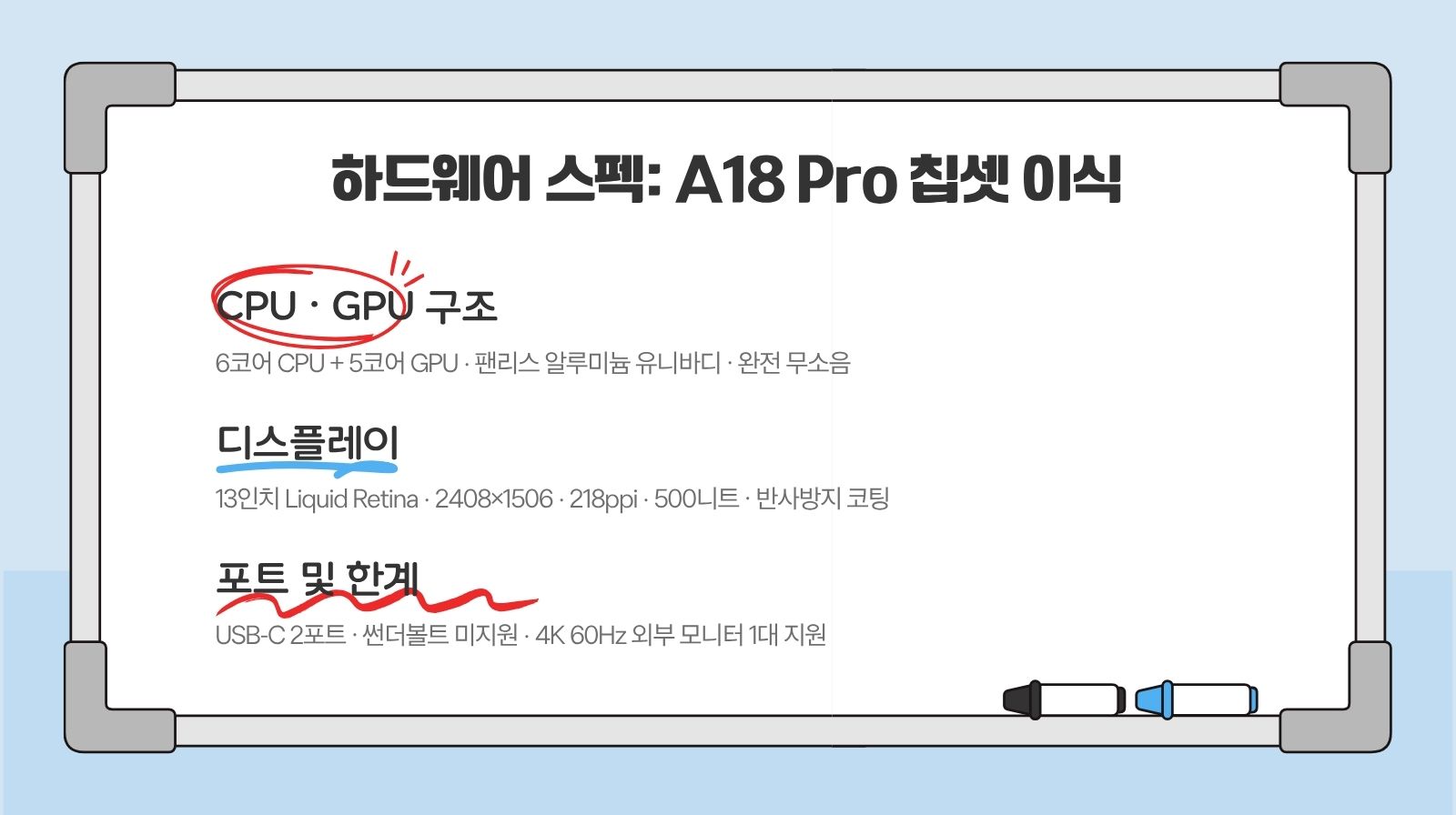 1. 하드웨어 스펙 상세 분석: A18 Pro 칩셋의 이식과 폼팩터의 한계