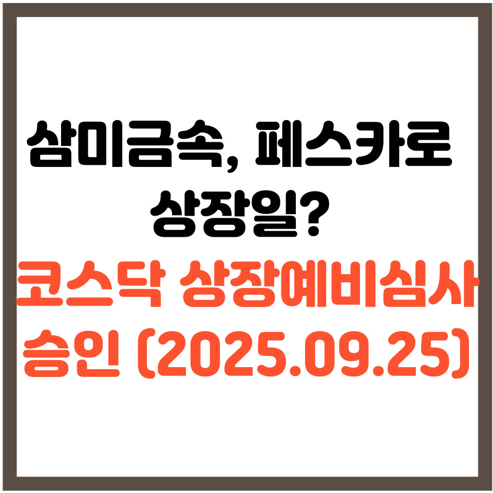 2025년 9월 25일 코스닥 상장예비심사 승인 기업: 페스카로(일반상장), 삼미금속(SPAC 합병상장).