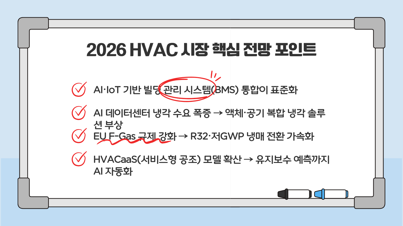 2026년 글로벌 HVAC 시장은 단순한 온도 조절 기기 산업을 넘어, 국가 전력망 효율화와 탄소 중립을 실현하는 가장 중요한 클라이밋 테크(Climate Tech) 영역으로 진화했습니다.