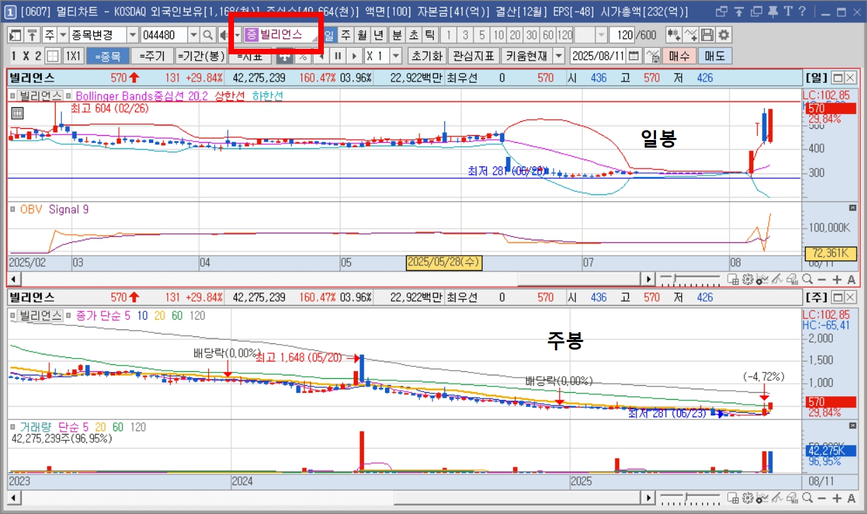 빌리언스 약 570원 (+29.8%) 고무제품, 엔터사업 무상감자 후 거래 재개, 재무 안정 기대