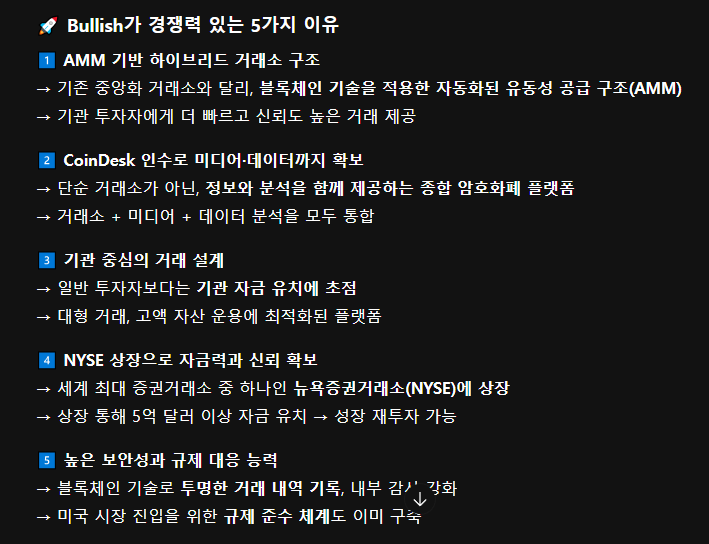 👉 여러분은 Bullish에 대해 어떻게 생각하시나요? 댓글로 의견을 나눠주세요. 😄
