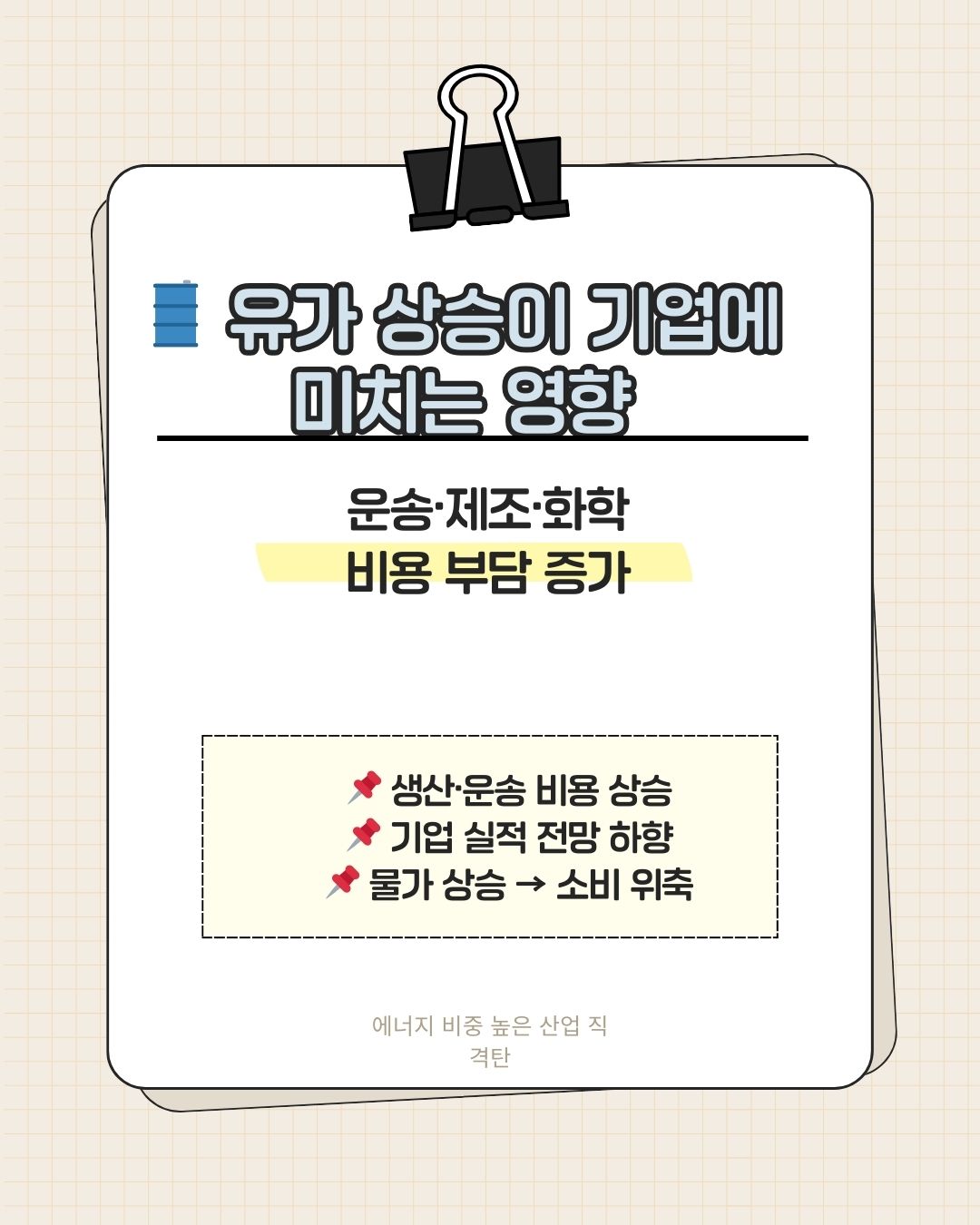 유가 상승이 발생하면 가장 먼저 영향을 받는 부분은 바로 기업들의 비용 구조입니다. 원유 가격이 상승하면 운송비와 생산 비용이 증가하게 되고, 이는 기업들의 수익성에도 영향을 줄 수 있습니다.