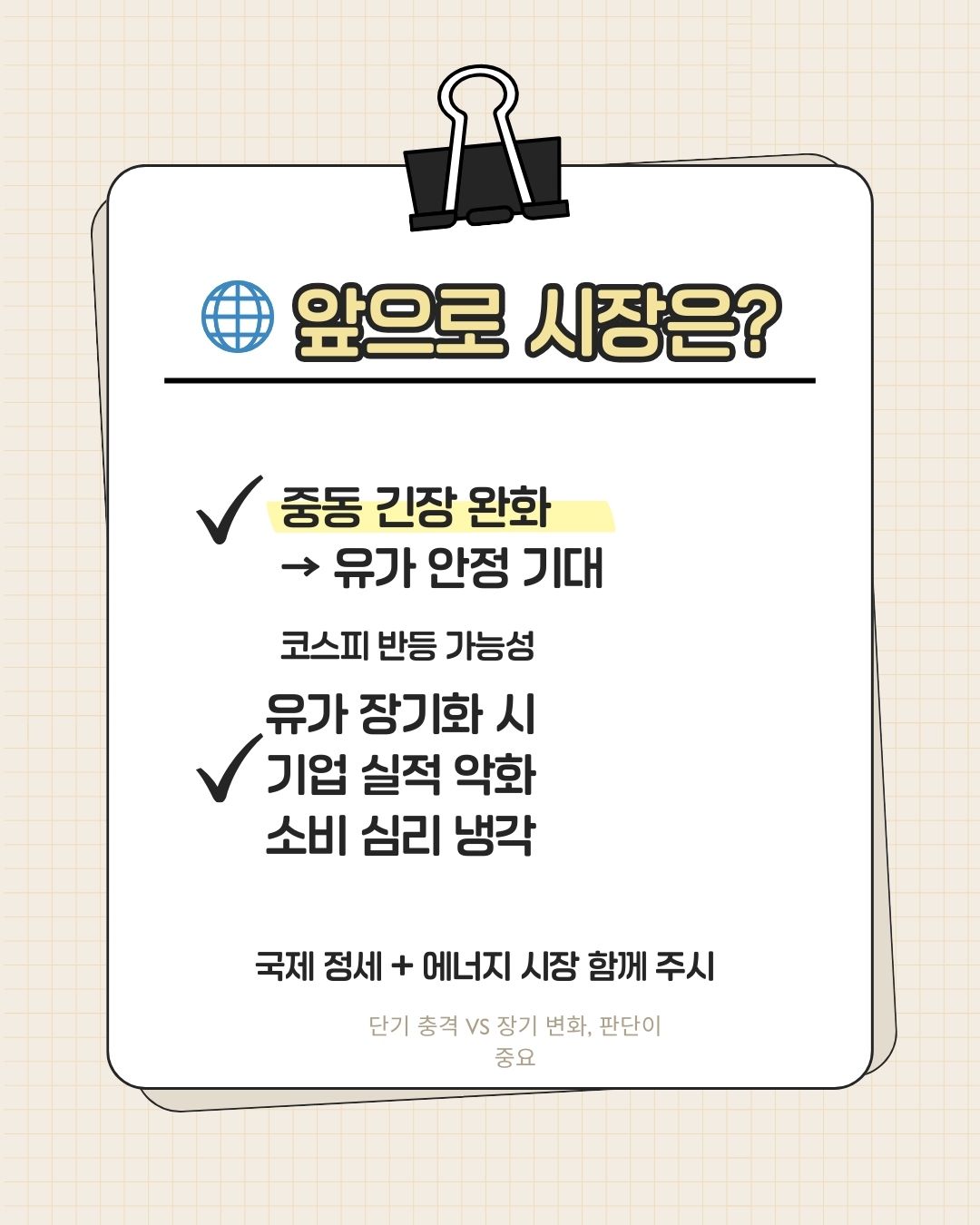 앞으로 국제 정세와 원유 시장 상황이 어떻게 전개되는지에 따라 한국 증시 역시 다양한 흐름을 보일 가능성이 있습니다.