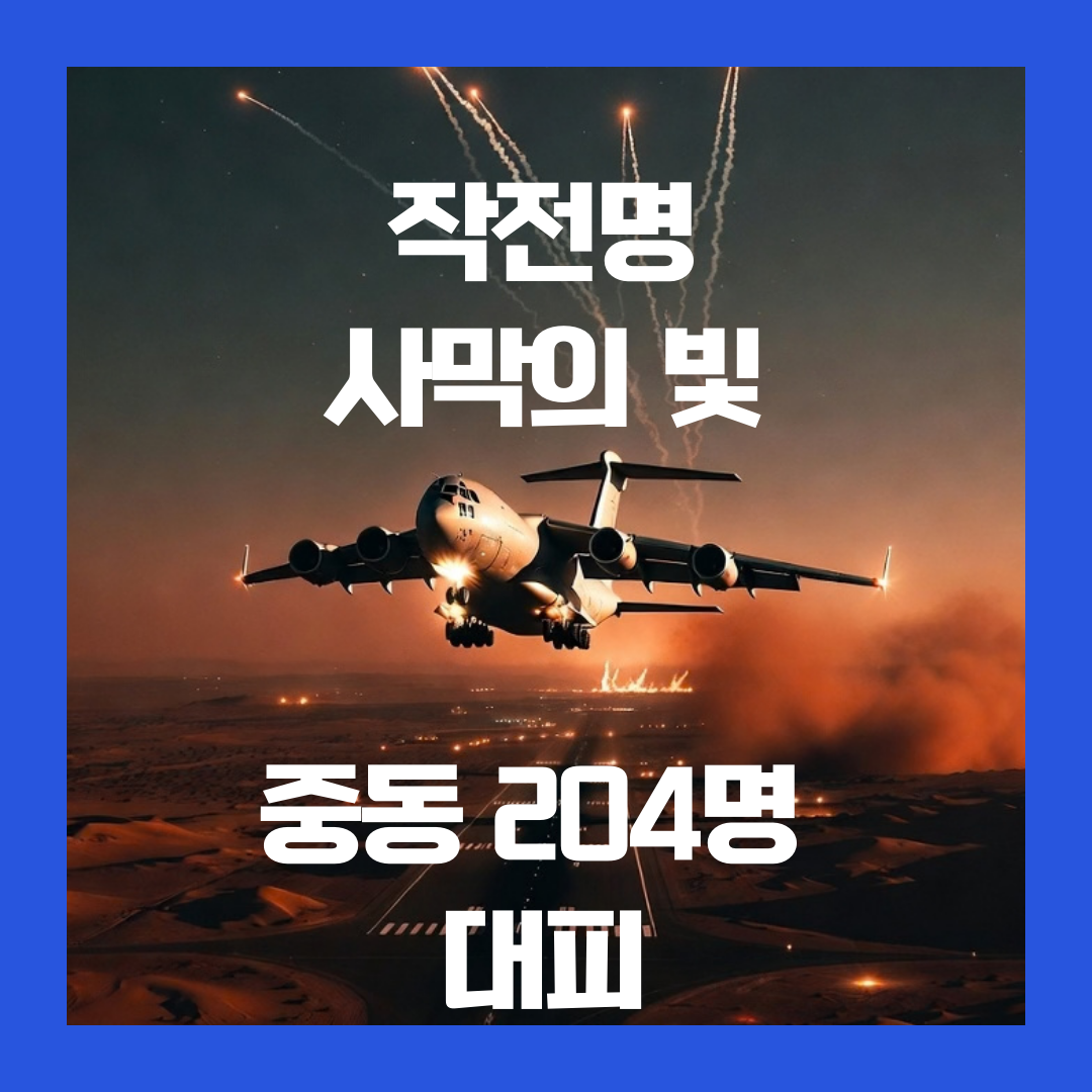 중동 정세가 불안정해지는 상황 속에서 진행된 작전명 사막의 빛 한국인 대피 작전은 한국 정부가 교민 보호를 위해 신속하게 대응한 사례로 평가된다. 군 수송기를 통한 대피 과정은 해외 위기 상황에서 국가의 역할을 다시 한번 보여주었다.
