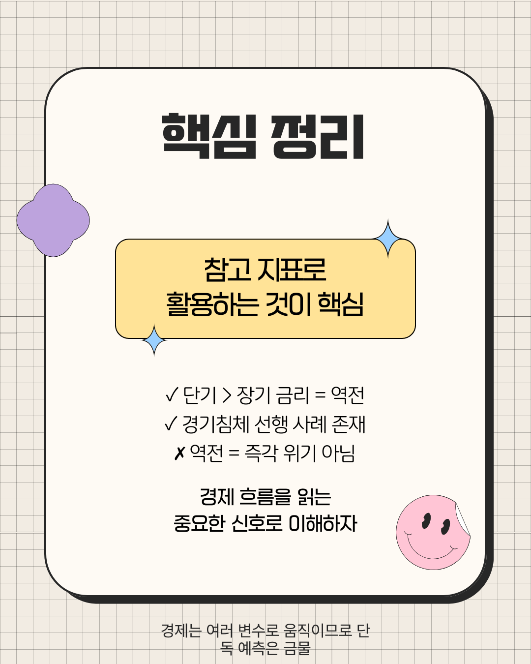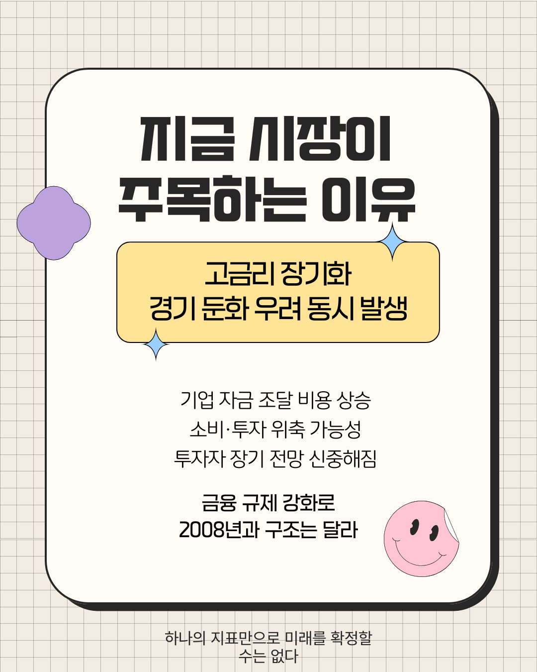 경제는 다양한 변수에 영향을 받기 때문이다. 금리 정책, 소비 흐름, 기업 투자, 글로벌 경제 상황 등 여러 요인이 함께 작용한다.