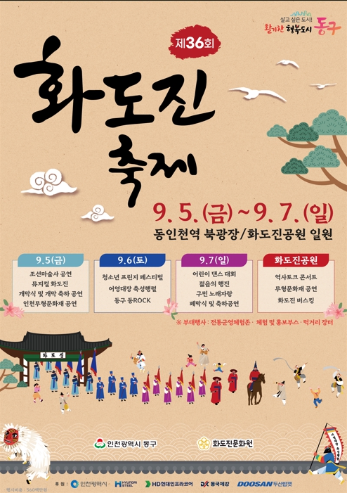 바로 제36회 화도진축제2025년 9월 5일(금)부터 9월 7일(일)까지 동인천역 북광장과 화도진공원에서 성대하게 열립니다.