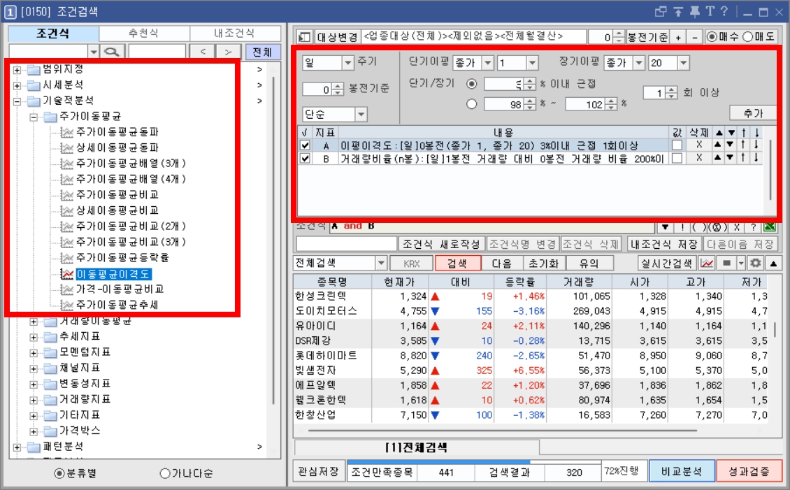 이 조건검색식은 단기 변곡점을 포착하는 데 유용하지만,