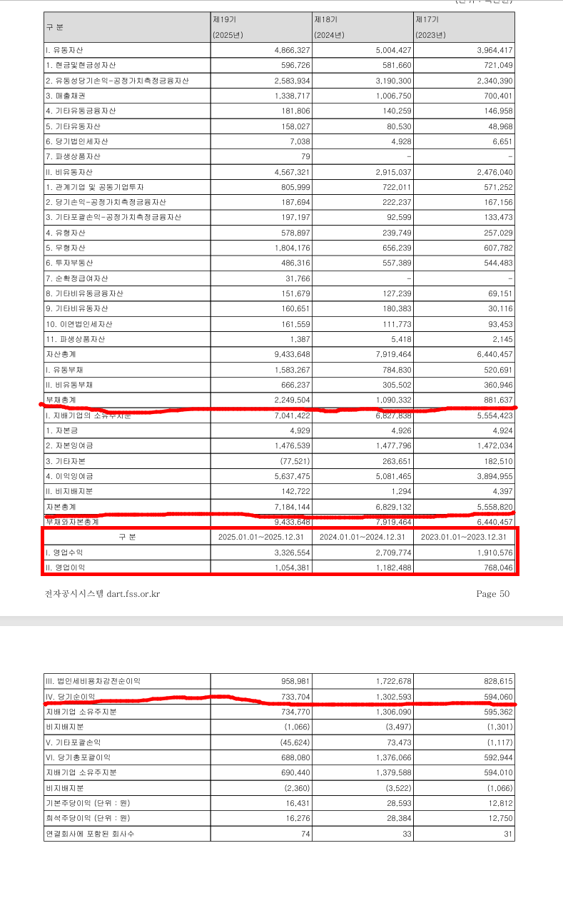 | 항목 | 2025 (제19기) | 2024 (제18기) | 2023 (제17기) |