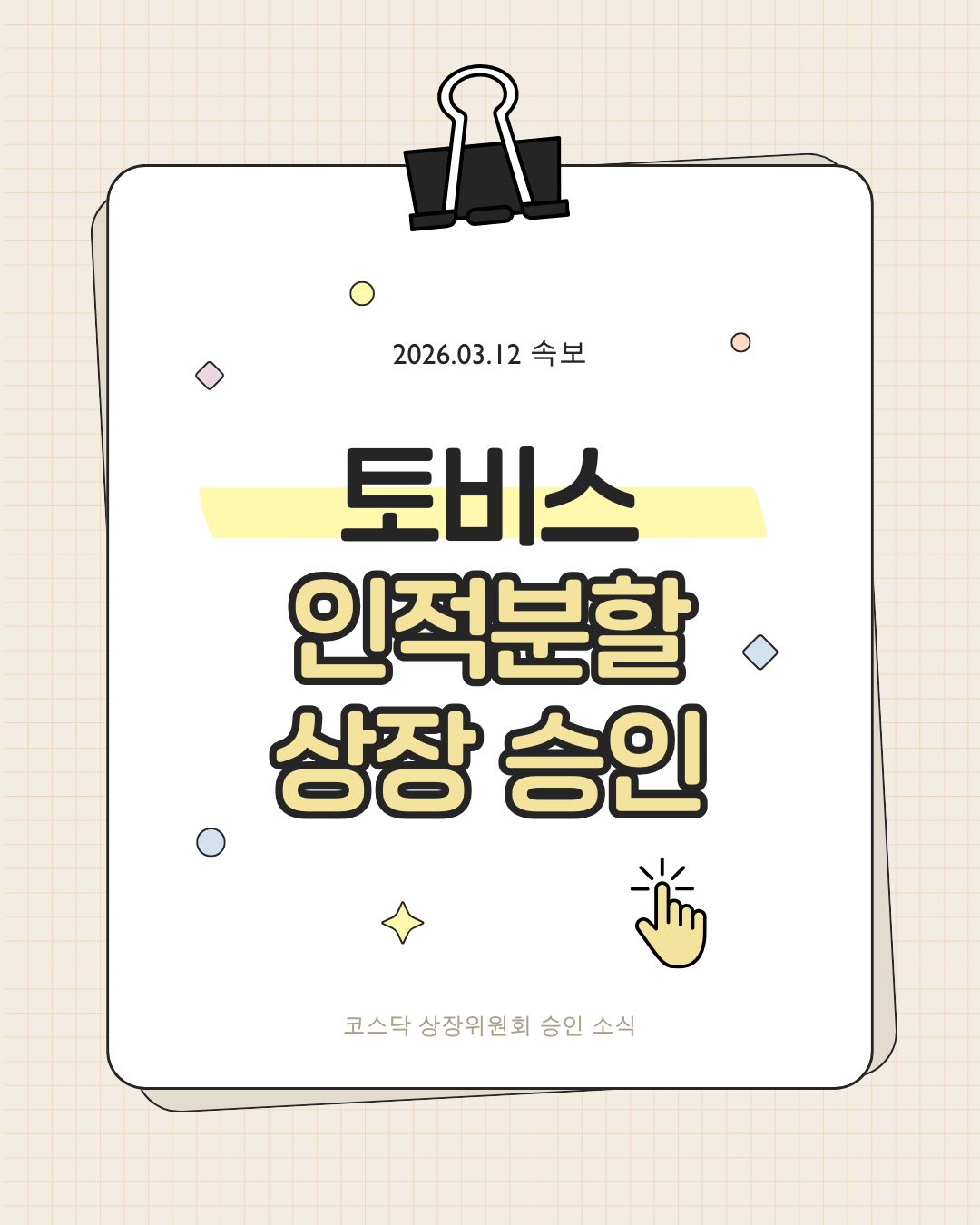 코스닥 시장에서 주목할 만한 기업 이벤트가 하나 발표되었습니다. 바로 토비스 인적분할 상장 승인 소식입니다.