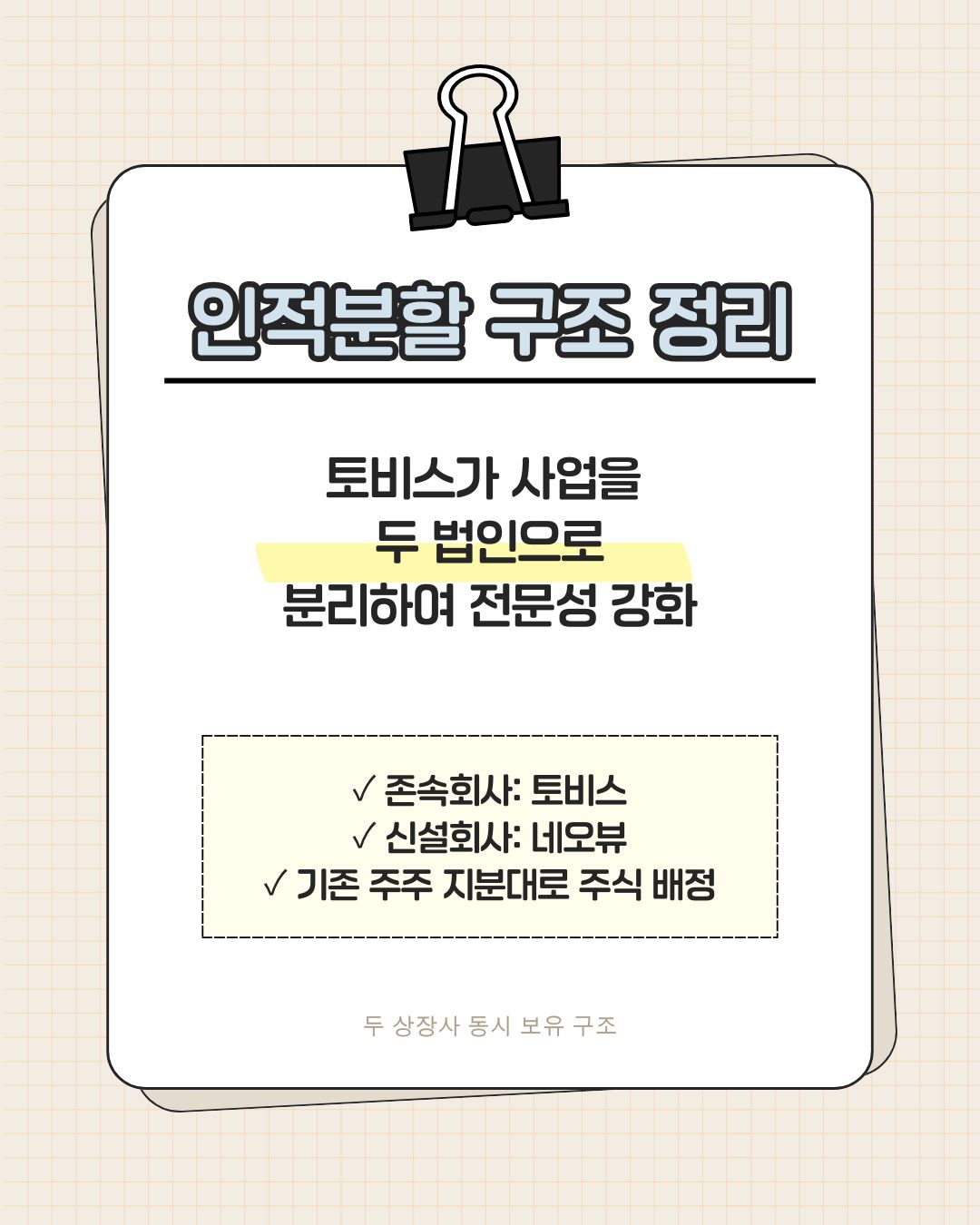 이번 토비스 인적분할의 기본 구조는 다음과 같습니다.