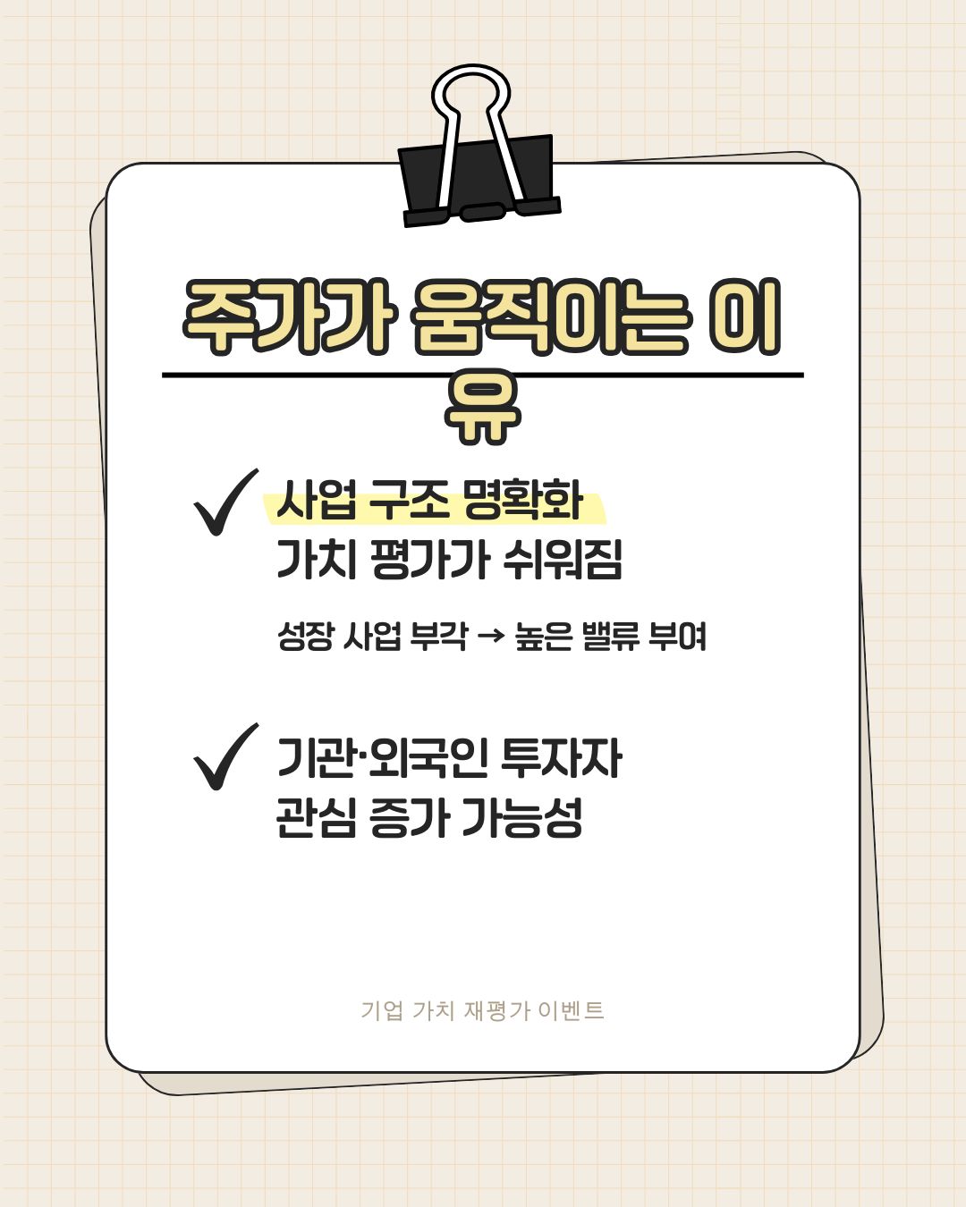 사업 구조가 단순해지면 기관 투자자나 외국인의 투자 접근성이 높아지는 경우도 있습니다.