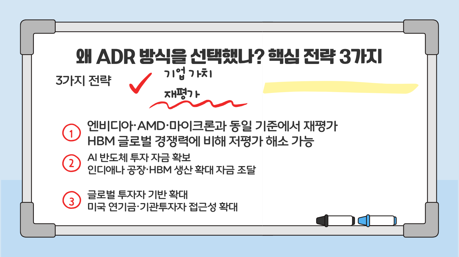 현재 SK하이닉스는 글로벌 HBM 시장에서 높은 경쟁력을 보유하고 있음에도 불구하고, 한국 시장 특성상 상대적으로 낮은 평가를 받아왔다는 분석이 있습니다.