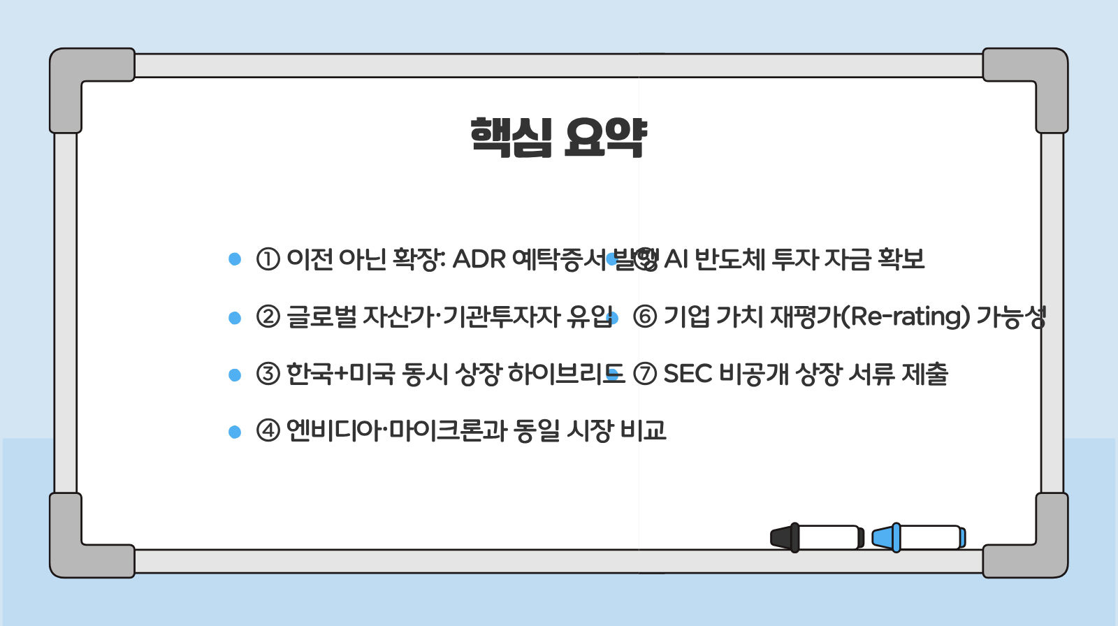 - 이전이 아닌 확장: 본사를 옮기는 IPO가 아니라, 한국 주식을 담보로 미국에서 거래되는 '예탁증서(ADR)'를 발행하는 전략적 확장입니다.