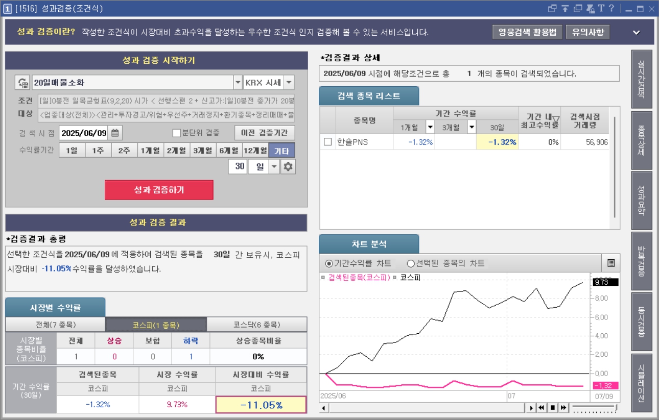 20일선 매물 소화 종목, 30일|조건검색식 성과 분석