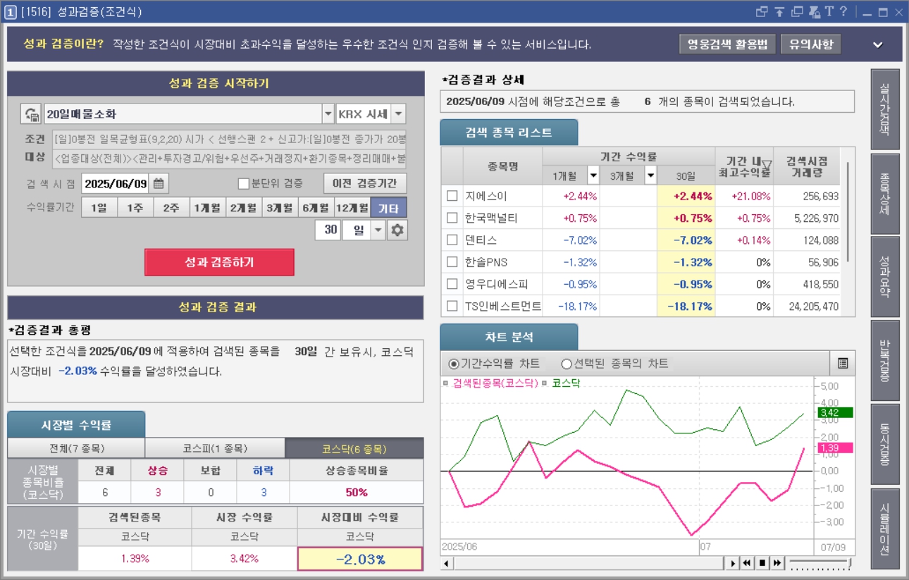 이번 포스팅에서는 20일 매물 소화 검색식을 활용해 실제 수익률을 검증해봤습니다. 이 조건이 과연 실전에서 얼마나 유의미한 전략인지 직접 데이터를 통해 확인해보세요.