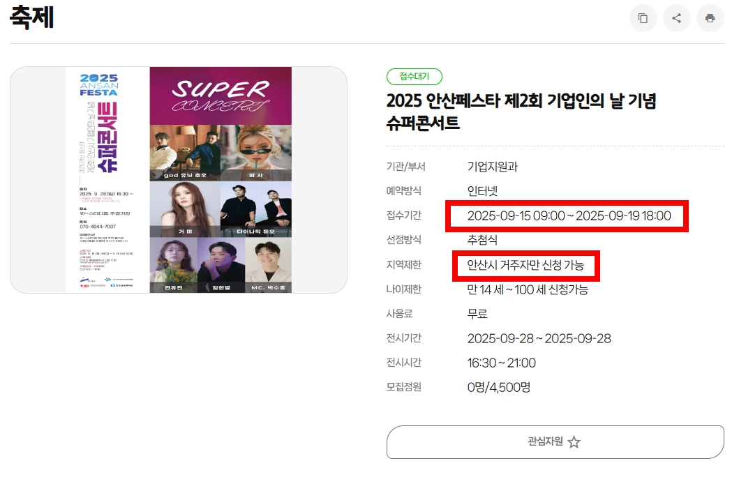 - 행사명: 2025 안산페스타 제2회 기업인의 날 기념 슈퍼콘서트