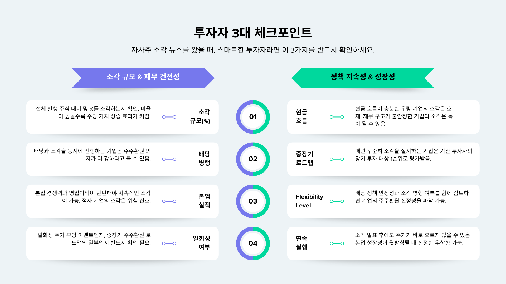 자사주 소각 테마에 올라탈 때 무작정 뉴스와 소문만 믿고 사면 안 됩니다. 다음 3가지 핵심 지표를 반드시 점검하세요.