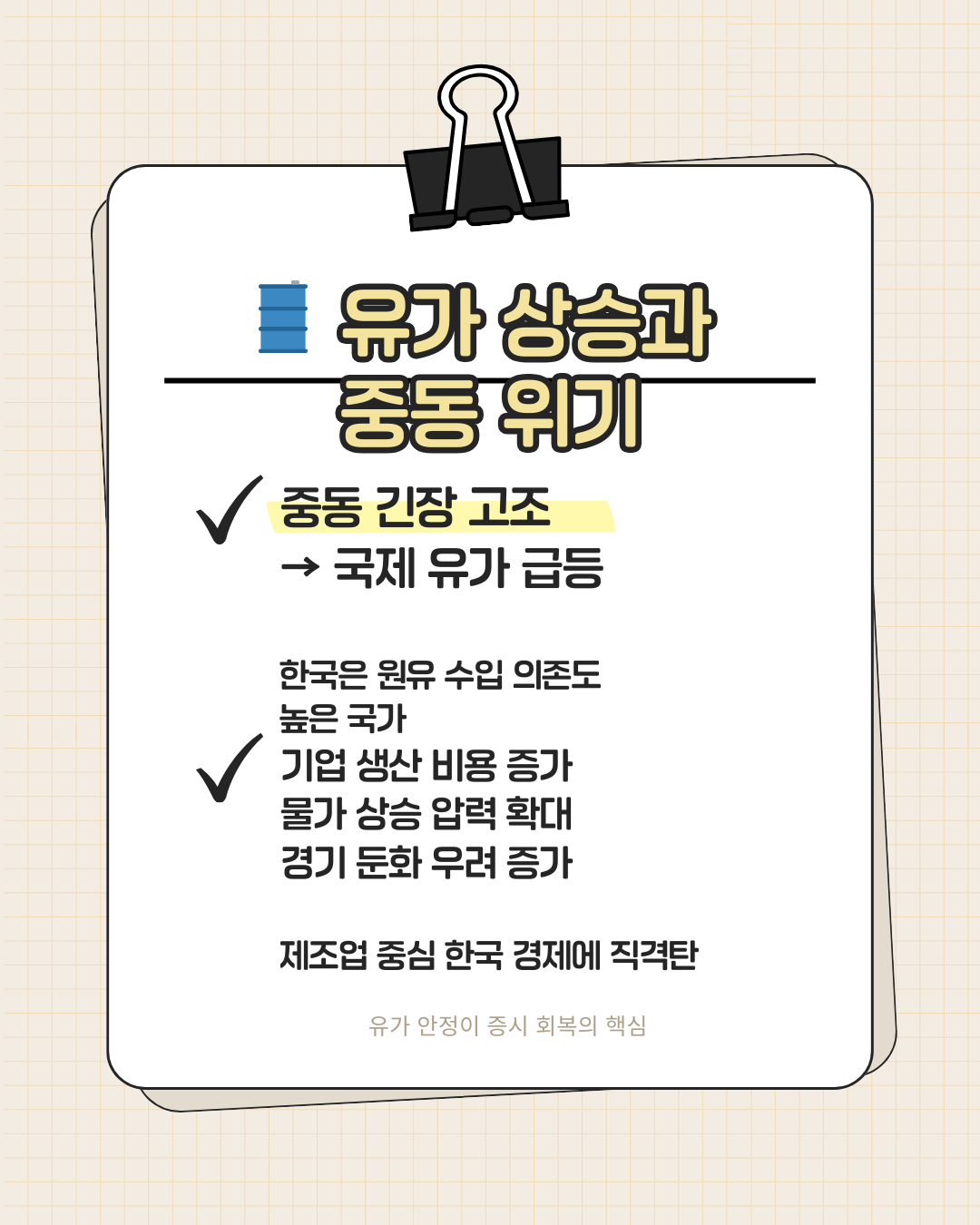 최근 금융시장에서 가장 크게 언급되는 변수는 바로 국제 유가 상승입니다. 중동 지역의 긴장이 높아지면서 글로벌 원유 가격이 상승했고, 이는 세계 금융시장에 영향을 미치고 있습니다.