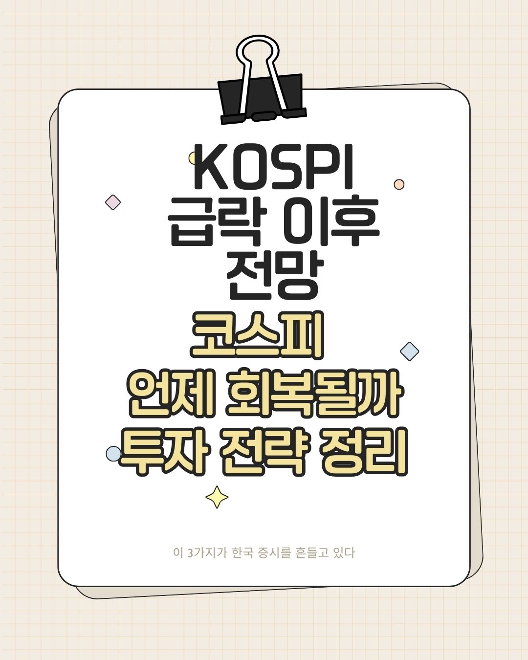 최근 국내 주식시장에서 가장 큰 관심을 받고 있는 이슈 중 하나가 바로 KOSPI 급락 이후 전망입니다. 글로벌 금융시장의 불확실성이 커지면서 한국 증시 역시 큰 변동성을 겪고 있기 때문입니다.