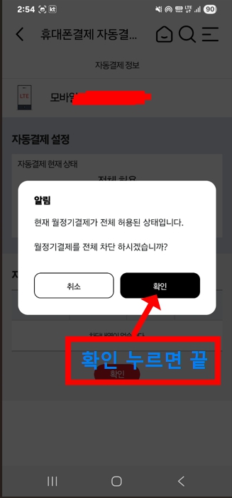 - 📷 이미지12 : [자동결제 차단] 버튼을 누르면 전체 차단 팝업이 뜹니다.