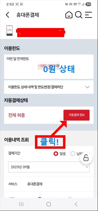 그래도 안심할 수 없어서 이번 기회에 소액결제 한도를 0원으로 바꾸고, 자동결제까지 완전히 차단했습니다.